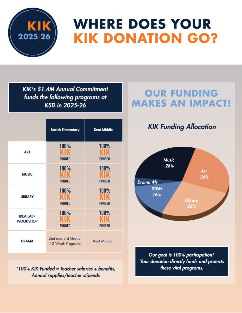KIK supports enrichments for every kid every day. With the money raised, KIK directly funds 100% of the costs associated with the following Enrichment programs at Bacich and Kent: library, art, music, drama, idea lab/maker studio and woodshop.